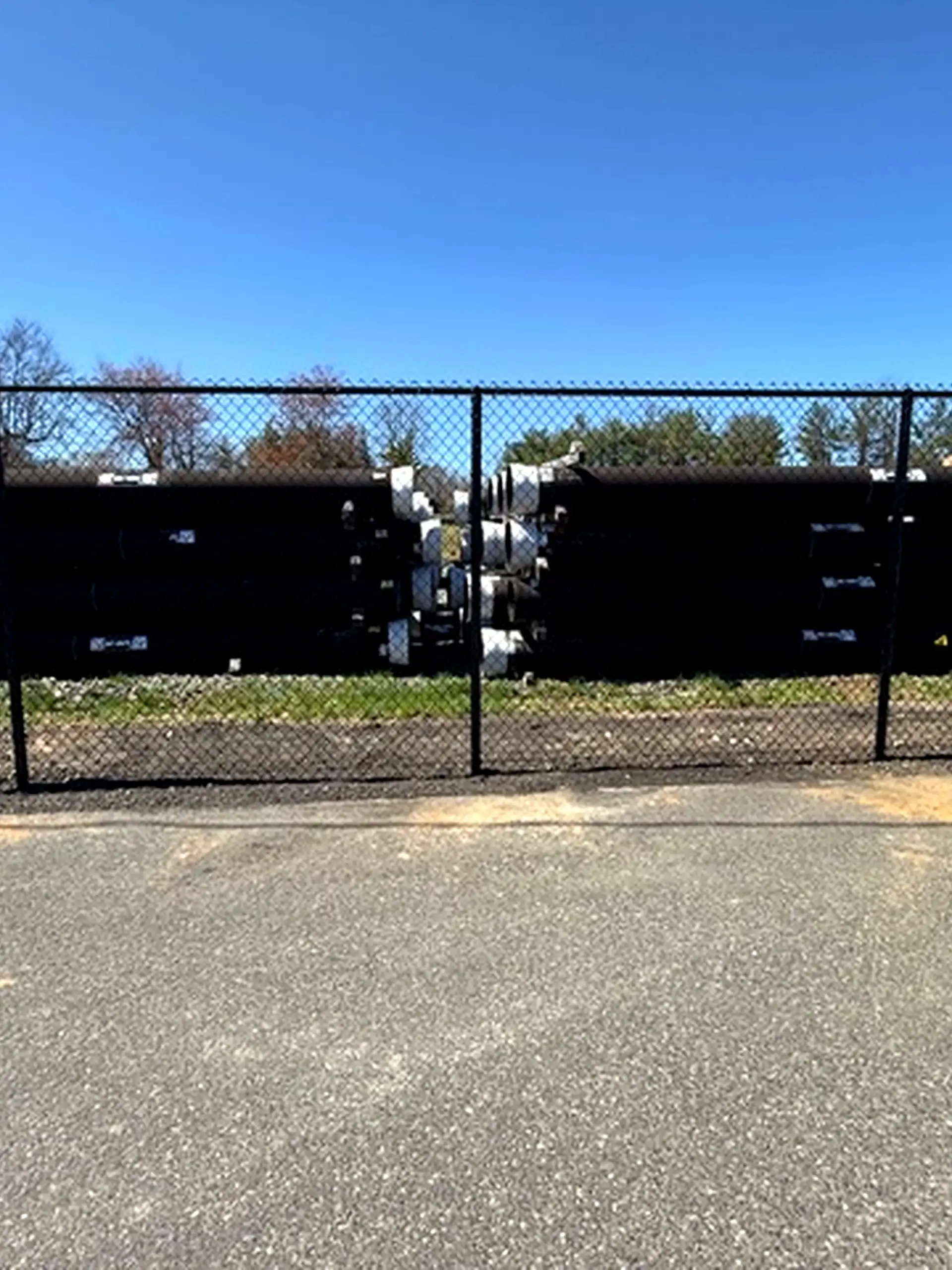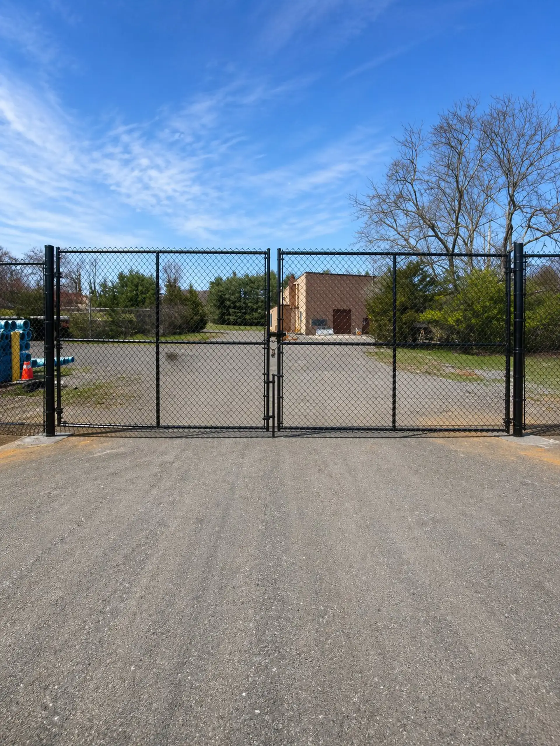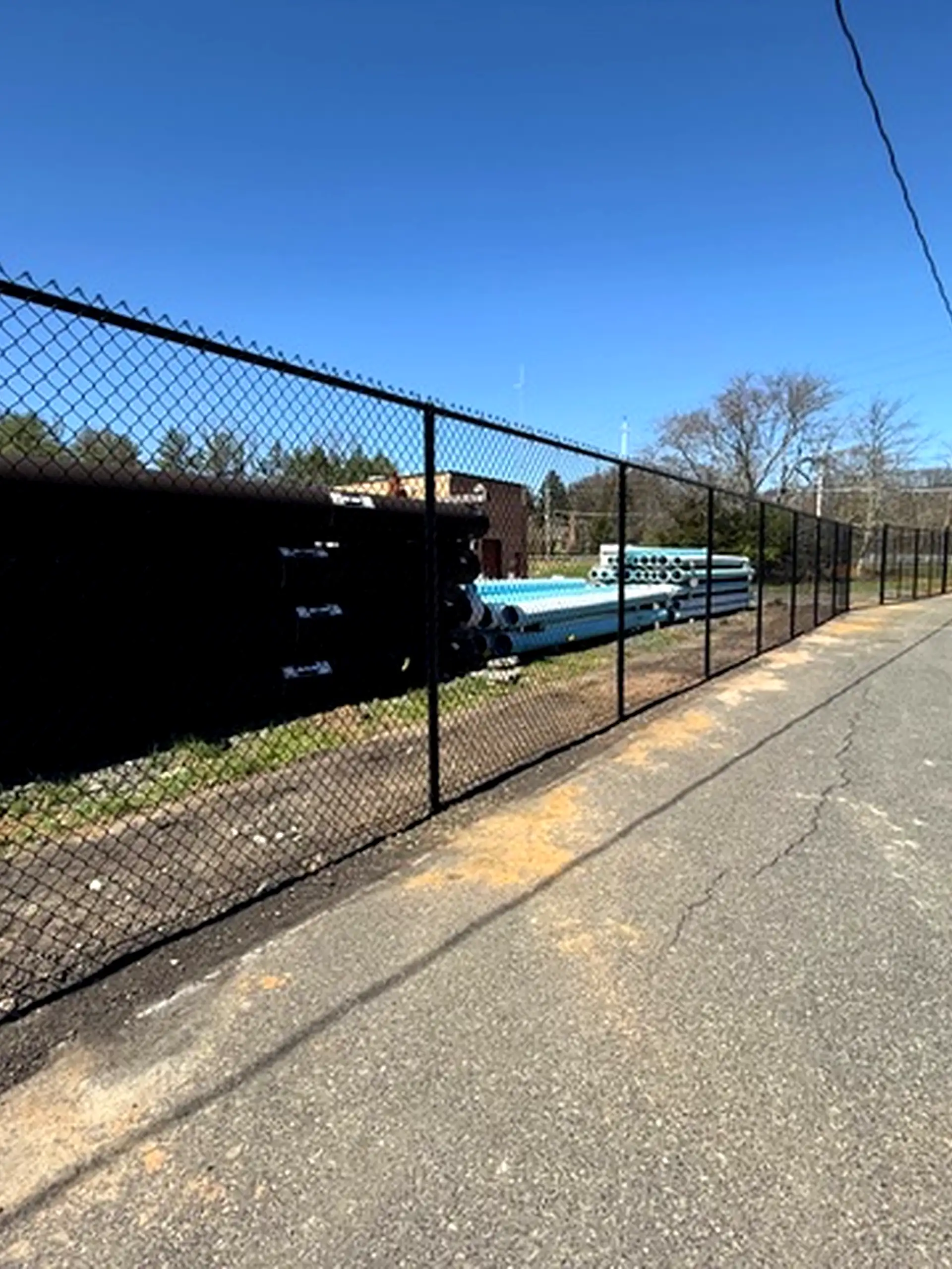 This project features an 8-foot-tall, all-black vinyl-coated chain link fence, delivering a strong physical barrier while maintaining a clean, professional appearance. The black finish not only enhances the overall look of the property but also provides added resistance to corrosion and weathering.