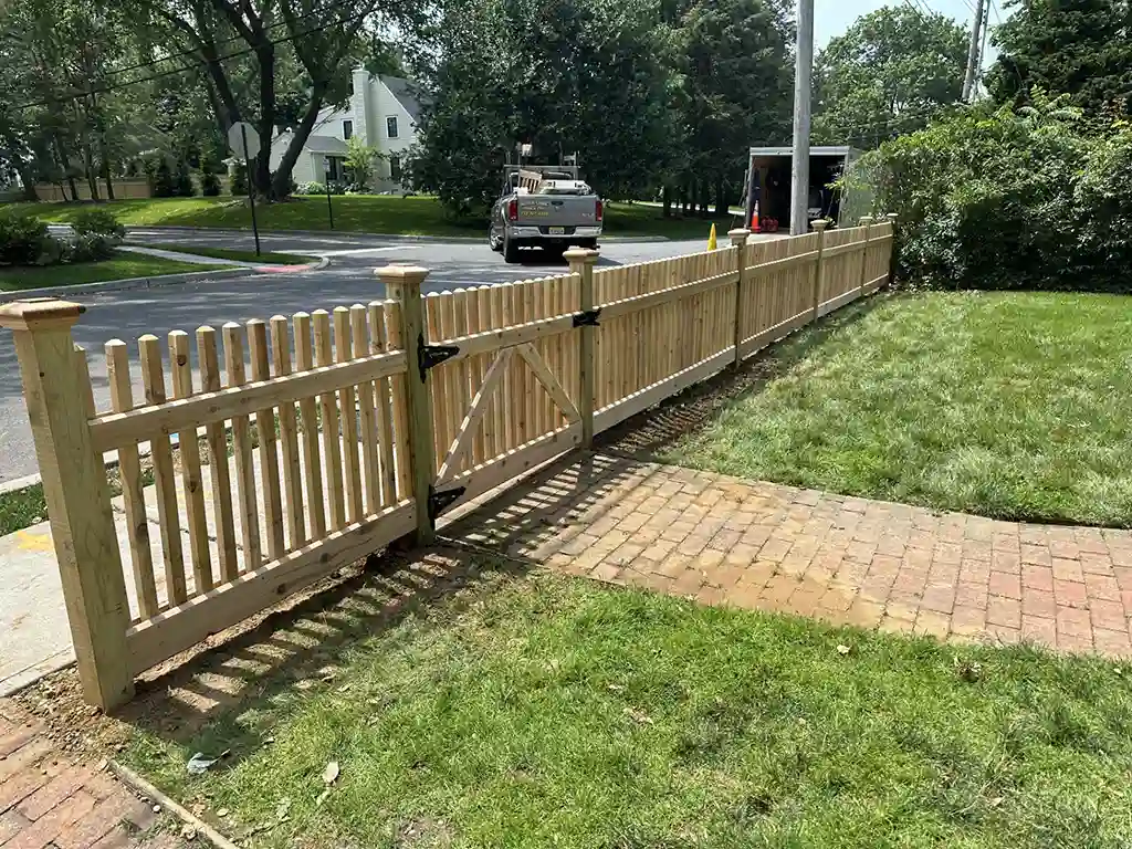 Classic style meets a classic shore-town. Installed in Fair Haven, NJ, this Classic Spindle-style fence is crafted from premium cedar, offering a perfect blend of elegance and durability. Its warm, rich tones and termite-resistant qualities make it a standout choice for homeowners who value both beauty and strength. A timeless addition that enhances any yard with charm and long-lasting performance.