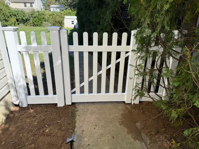 Crafted from durable, low-maintenance PVC, the gate features classic picket styling, reinforced framing, and heavy-duty black hardware for strength and long-lasting beauty. Its clean, bright design complements the home perfectly while providing reliable functionality and easy access between the yard and driveway.